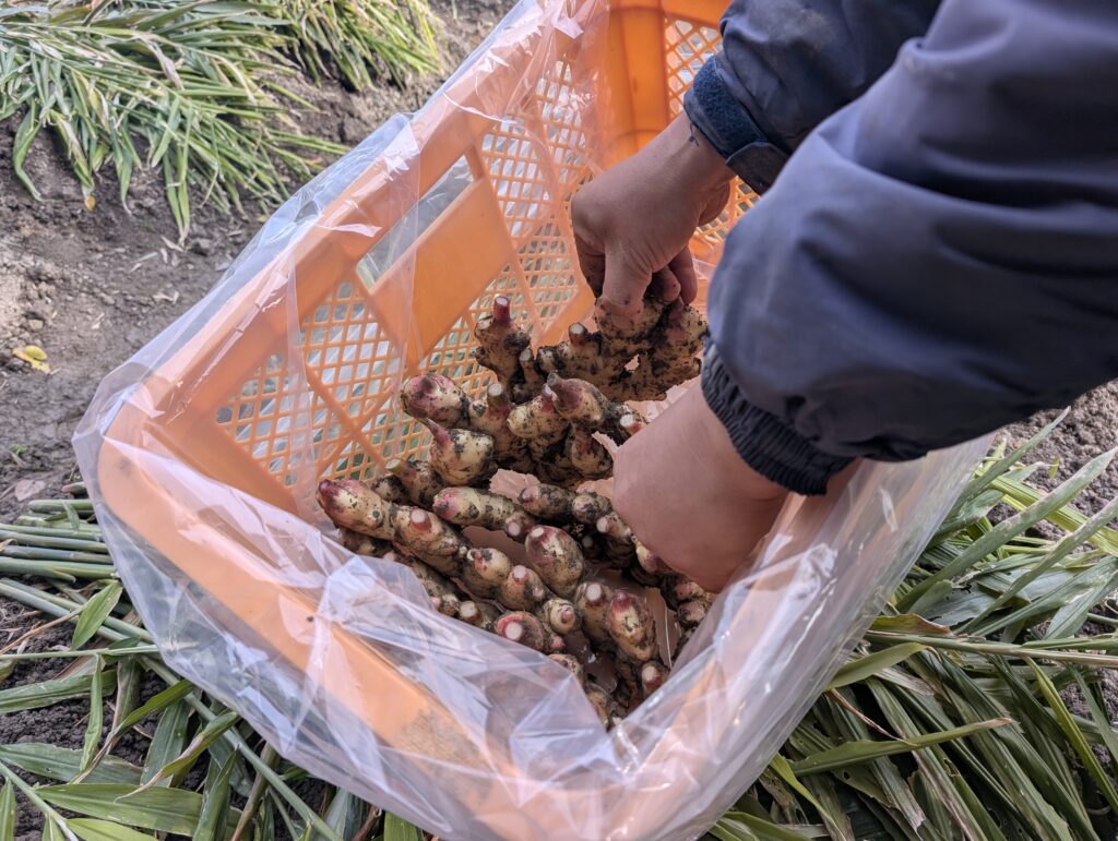1株ずつ大事に掘り起こし、生姜が割れないように1本1本茎をカットして丁寧に箱詰めされている姿見て、このようにして農産物が届けられているんだな、と感じられたことは私にとっても大きな収穫でした。