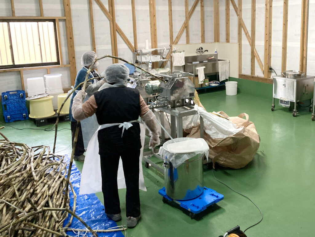 3月に収穫し大型冷蔵庫で保管していたサトウキビ搾汁液を、テスト販売に向けて製品化することでした。