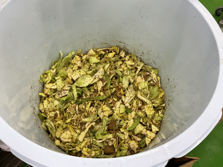 そのキャベツは、工場からほぼ琵琶湖を挟んだ向かい側、近江八幡市の生産者さんが直接トラックで届けてくださいます。