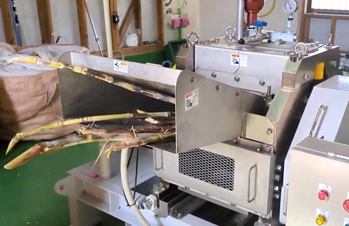 種子島工場では、地元産のさとうきびを使い、サトウキビ濃縮エキスの製造を行っています。